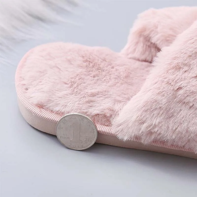 MCCKLE Autumn Women Fluffy Flat Slippers Ladies Plush Furry Cross Crystal Female Open Toe Home Shoes Fashion Female Footwear :Click Here