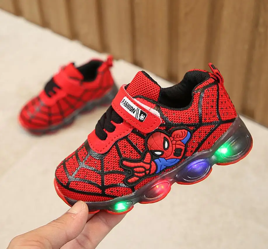 Led luminous Spiderman Kids Shoes for boys girls Light Children Luminous baby Sneakers mesh sport Boy Girl Led Light Shoes :Click Here