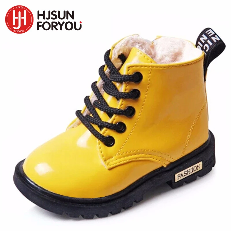Big Discount 2020 New Winter Children Shoes PU Leather Waterproof Martin Boots Kids Snow Boots Brand Girls Boys