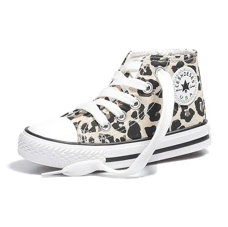 New Leopard Print Children Casual Shoes Unisex Classic High Top Girls Canvas Shoes Student Lace up Snea