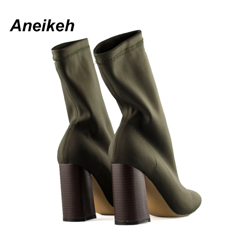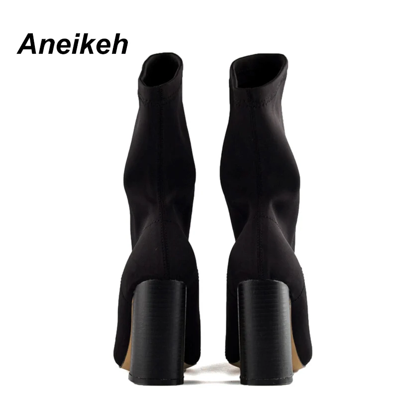 Latest Product Aneikeh Women's Boots Pointed Toe Yarn Elastic Ankle Boots Thick Heel High Heels Shoes Woman Female