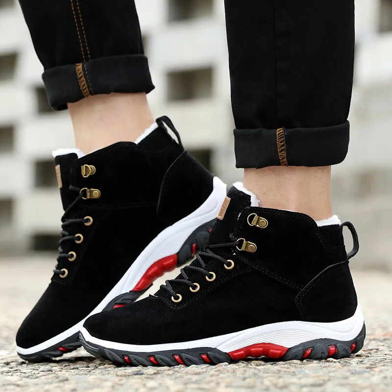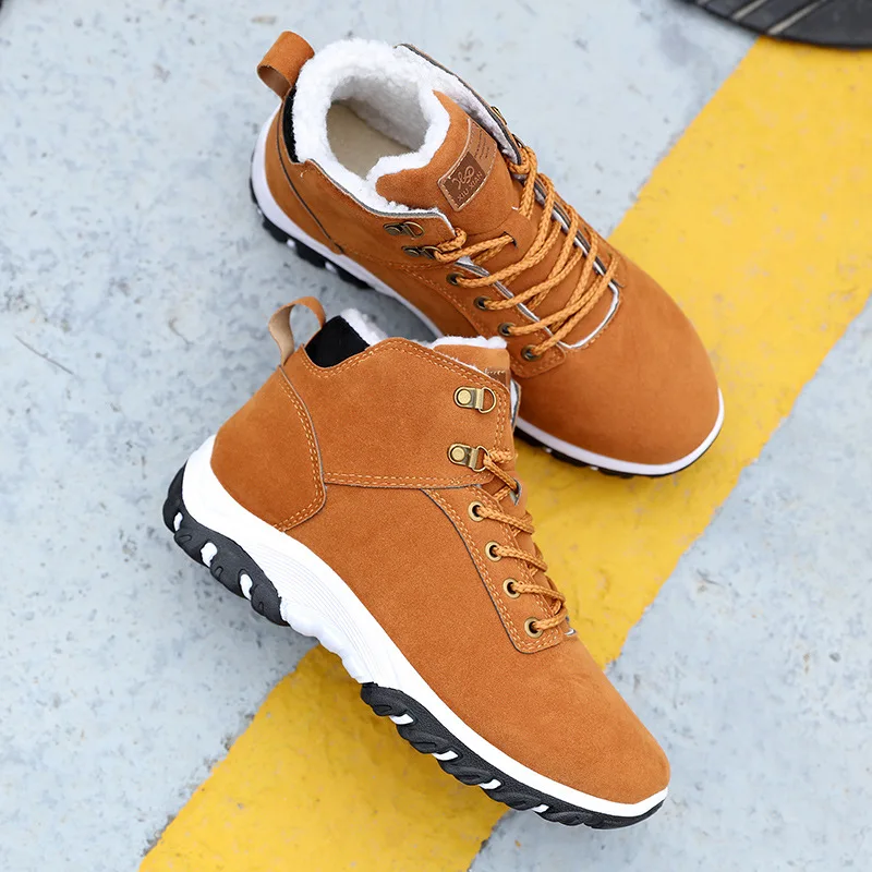 New Men Snow Boots Winter Cotton Shoes with fur Lace-up Sneakers Warm Fleeces Ankle Boots High Flat Cas