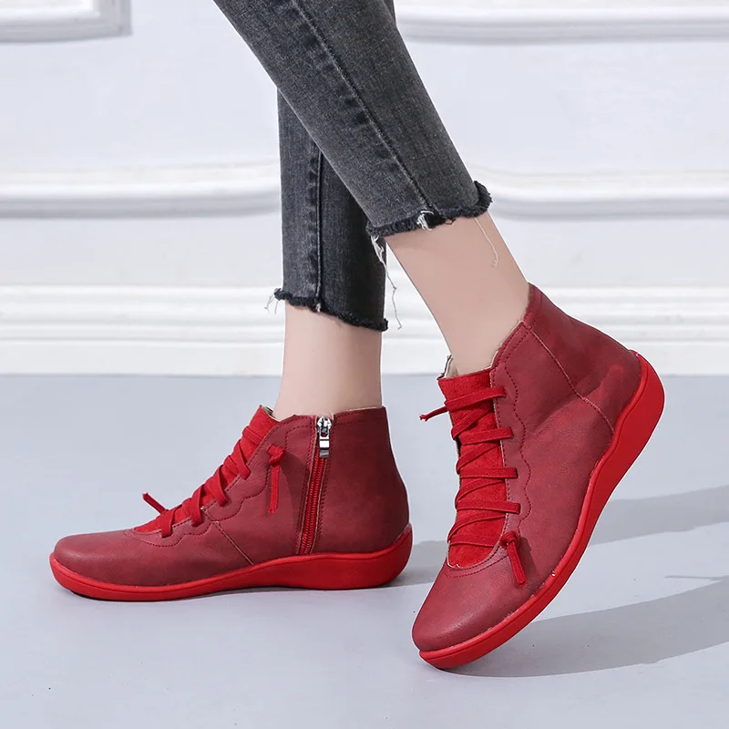 2020 New Women's Ankle Boots Flats Leather PU Booties Winter Autumn Cross Strappy Boots Woman Shoes Ladies Punk Lace Up 35-43 :Click Here