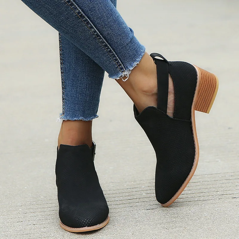MoneRffi Platform Thick Heels Ankle Women's Boots Autumn Pointed Toe Hollow Out Zipper Clog Shoes Woman Fashion Footwear Ladies :Click Here