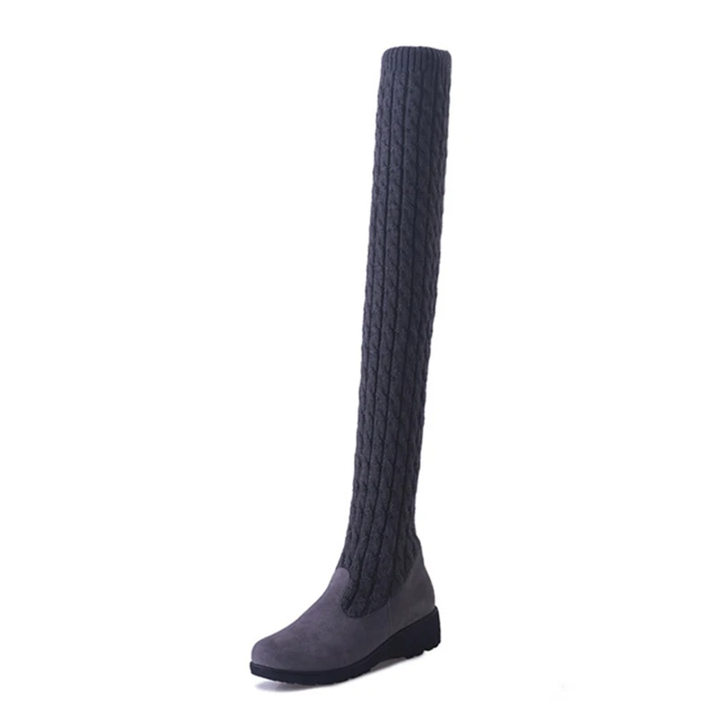 Popular Women's Boots 2019 Autumn Winter Thigh High Boots For Woman Shoes Knitting Wool Long Boot Women Bro