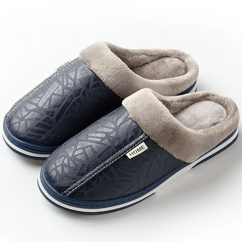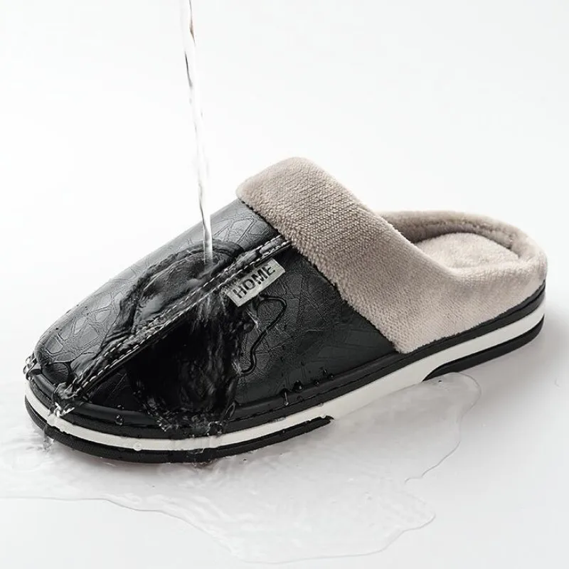 2019 Winter House Slippers Men Leather Plush Male Shoes Waterproof Anti Dirty Warm Fur Slippers Non-slip Cotton Man Indoor Shoes :Click Here