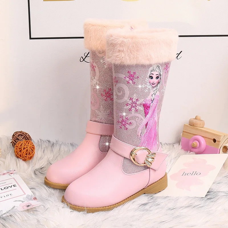 Kids Princess shoes Children Cartoon Boots PU leather Sequin Winter Boots New girls Genuine Wool Warming Over Knee boots :Click Here
