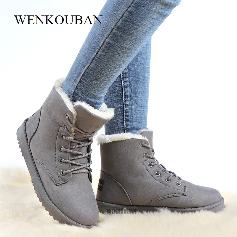 Popular Winter Boots Women Snow Ankle Boots Female Warm Lace Up Rubber Shoes Suede Platform Boots Plush Ins