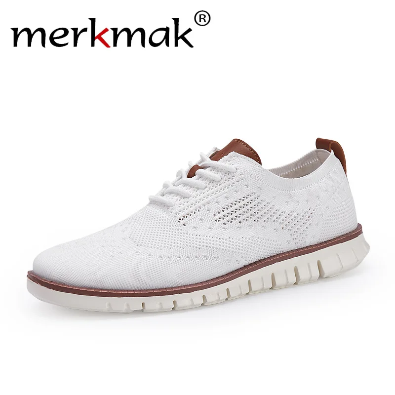 Low Price merkmak New Brogue men's Shoes Lace up lightweight British Dress Footwear Fashion hollow breathable