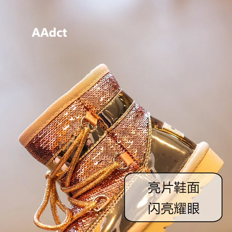 Trend AAdct winter fur warm girls boots fashion princess new snow kids boots for girls Sequins cotton chi
