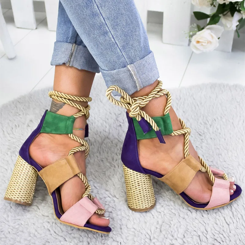 Women New Sandals Women High Heel Peep Toe Lace Up Sandals Shoes Summer Beach Boho Sexy Gladiator Sandals Shoes 2019 :Click Here
