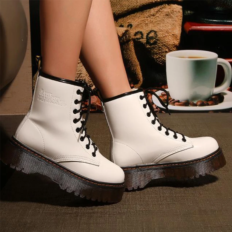 Lucyever Womens Autumn Winter Ankle Boots Lace Up Flat Heels Fur Cotton Padded Platform Shoes Woman Leather Military Botas Mujer :Click Here