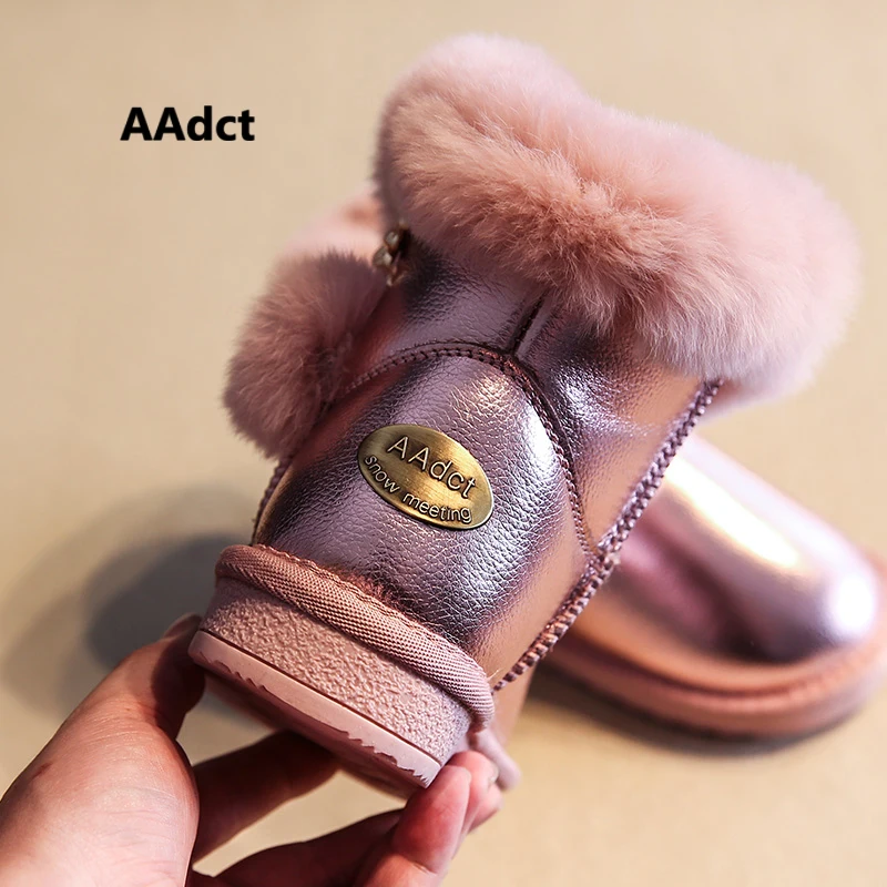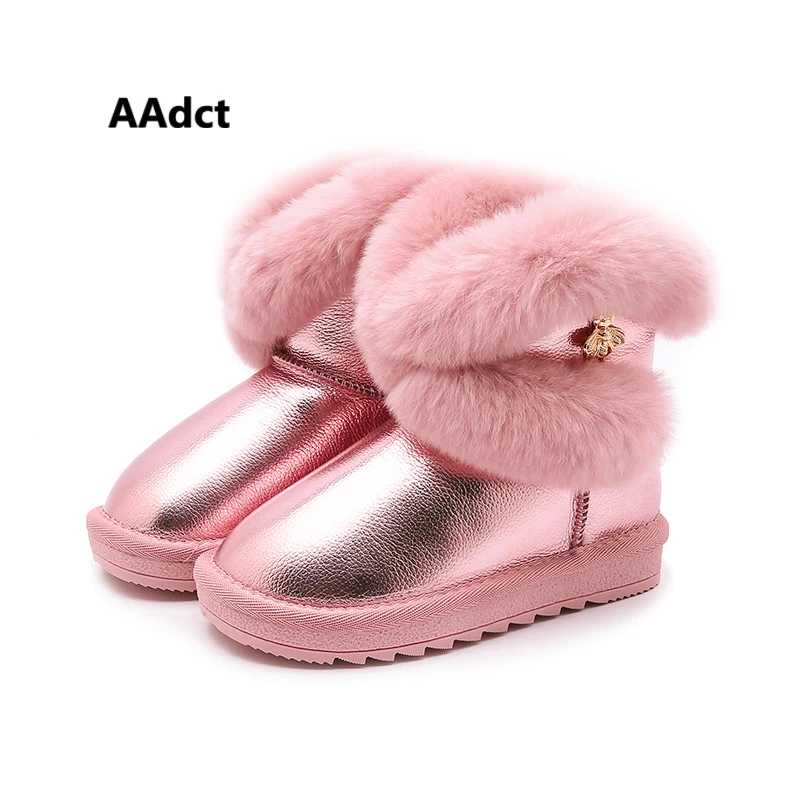 Buy AAdct Handmade waterproof girls boots winter fur cotton warm kids snow boots for girls Brand rabbit