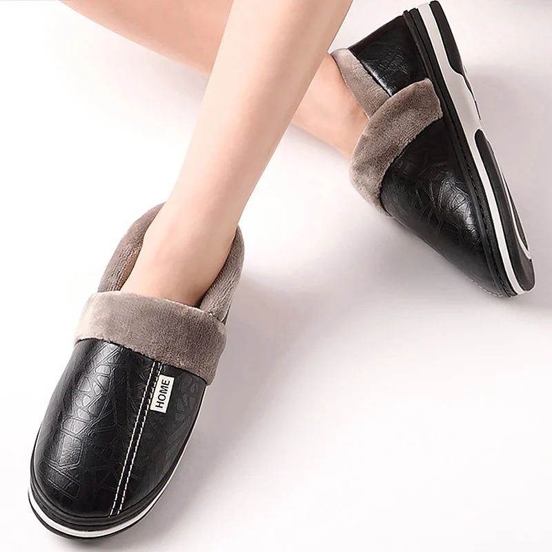 Fashion PU Leather Flat Slippers Women Large Size 43-50 Sahllow Non Slip Winter Slippers Woman Solid Indoor Shoes PVC :Click Here