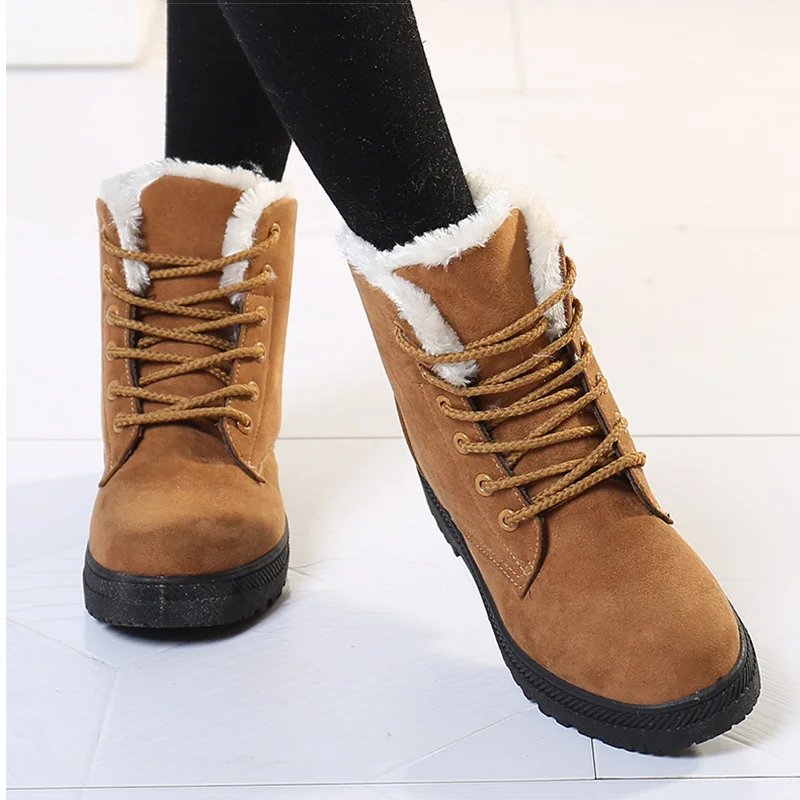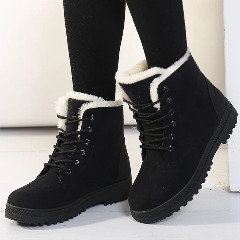 Women Boots Winter Shoes Female Plush Inside Snow Boots High Quality Flock Ankle Boots Lace Up Flats Women Shoes Botas Fashion :Click Here