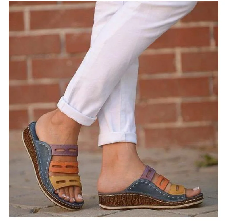 2019 New Summer Women Slippers Rome Retro Casual Shoes Thick Bottom Wedge Open Toe Sandals Beach Slip on Slides Female :Click Here