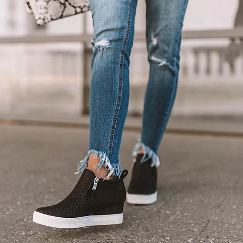 Best Product HEFLASHOR Women Sneakers 2019 Breathable Wedges Platform Vulcanize Shoes Woman Pu Leather Women Cas