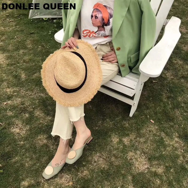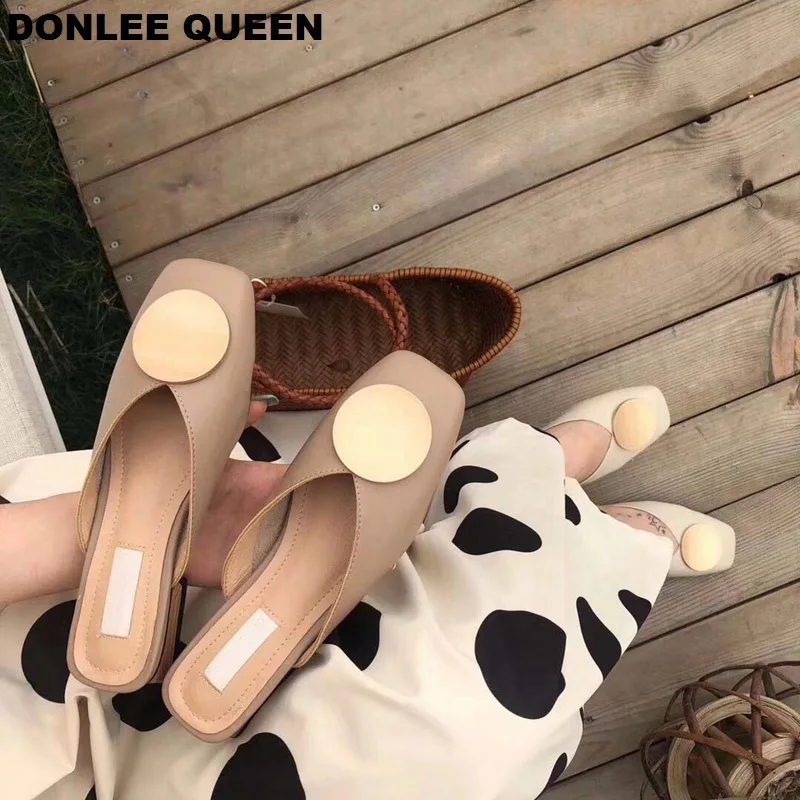 The Latest 2019 Brand Designer Women Slippers Slip On Mules Flat Heel Casual Shoes British Buckle Slides Woode