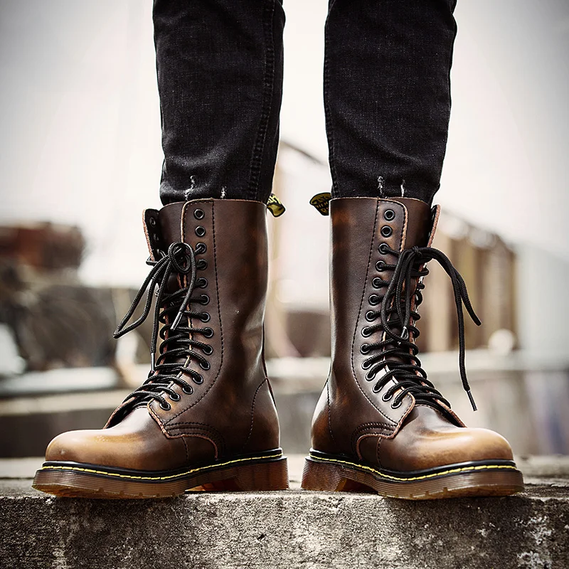 Couples Popular Motocycle Boots Size 35 -42 Women High-Top Combat Boots Men Leather For Women Casual Luxury Military Boot Army :Click Here