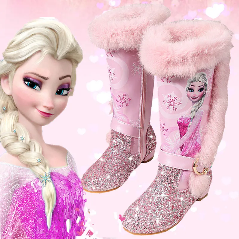 Kids shoes Children Princes Cartoon Boots quality leather Fur lining Winter Boots New girls Warming Knee-high boots :Click Here