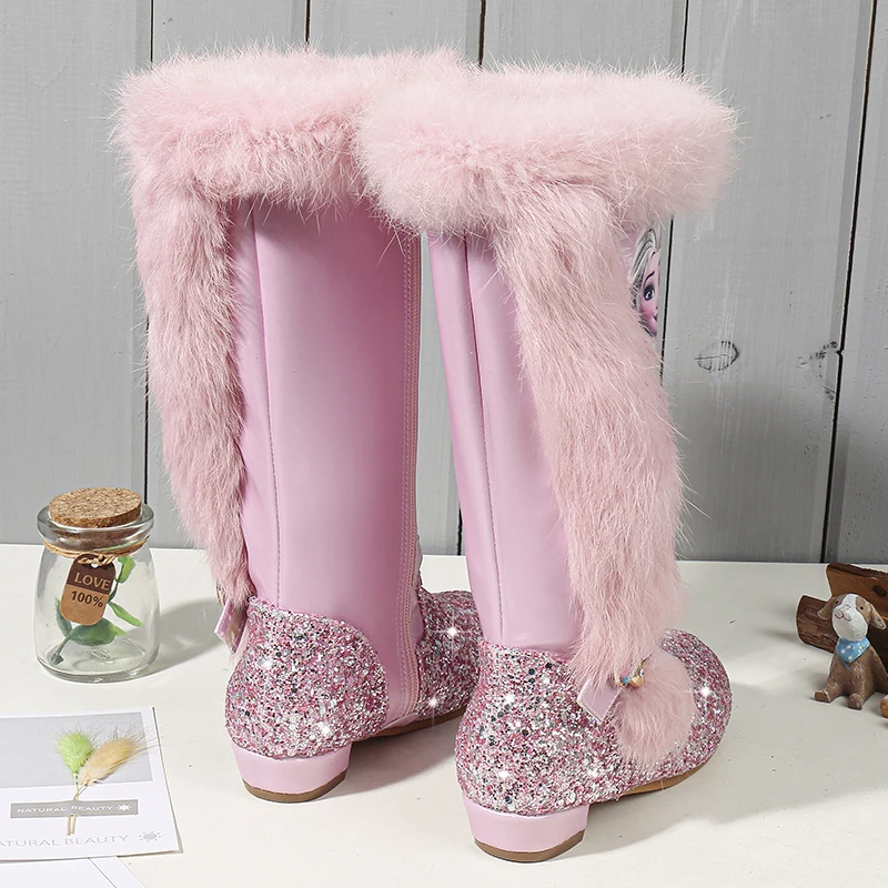Trend Kids shoes Children Fashion Cartoon Princess Boots Quality leather Sequin High-Knee Boots Girls Gen
