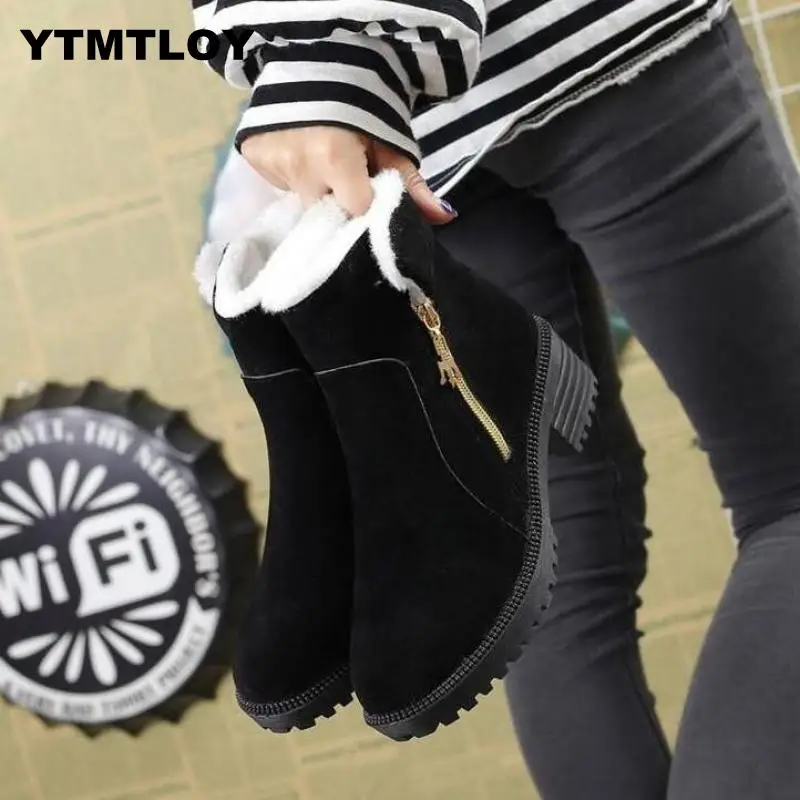 Plus Size 35-43 Winter Casual Women Pumps Warm Ankle Boots Waterproof High Heels Snow Martin Shoes Botas Patent Botas Muje :Click Here