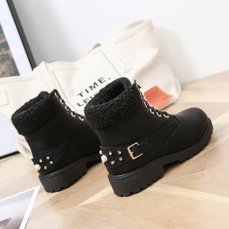 Women winter boots 2019 autumn and winter fashion lace up Ankle boots female casual retro tooling boots women winter shoes :Click Here