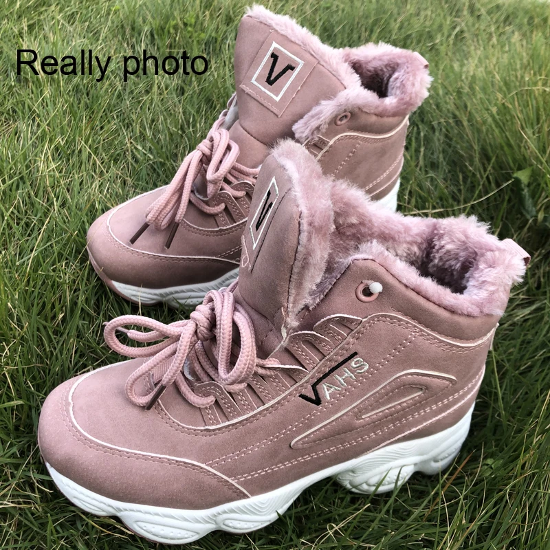 SWONCO Thick Fur Winter Shoes Women Sneakers High Top 2019 Female Causal Shoes Snowboots Warm Winter Shoes Chunky Sneakers Black :Click Here