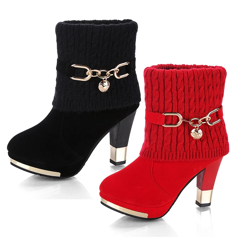 Winter Shoes Woman Boots High Heel Boots Laydies Black Red Botas Mujer Christmas Bota Feminina Plus Size 35-43 :Click Here
