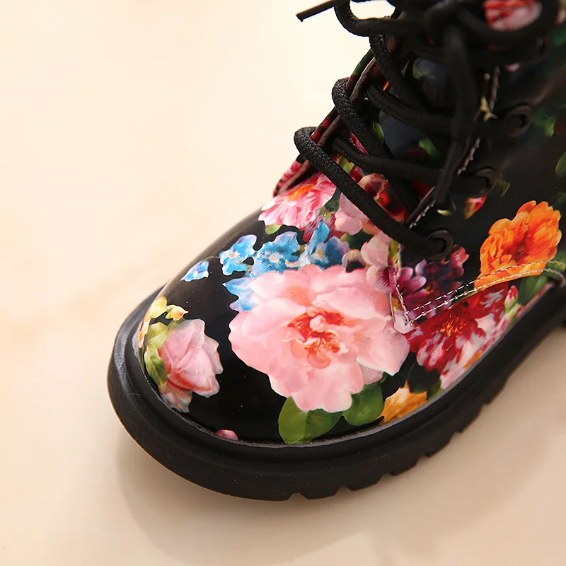 Big Sale Comfy Kids Shoes Floral Martin Boots for Girls Botas Elegant Flower Print PU Leather Shoes Child Ru