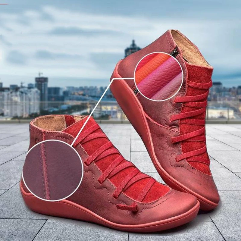 Buy Online Women Arch Support Ankle Boots Casual Cross Strappy Side Zipper Winter Short Leather Boots Vintage