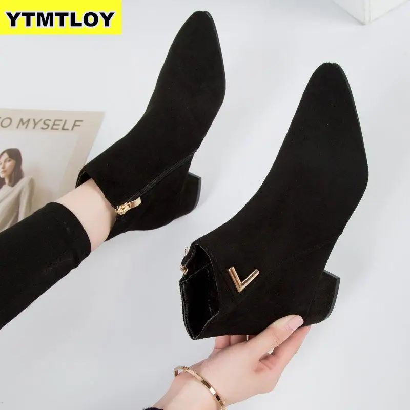 2019 Fashion Sexy Women Boots Short Martin Ankle Autumn New Pointed Metal Elegant Casual Shoes Woman Non-slip Zapatos De Mujer :Click Here