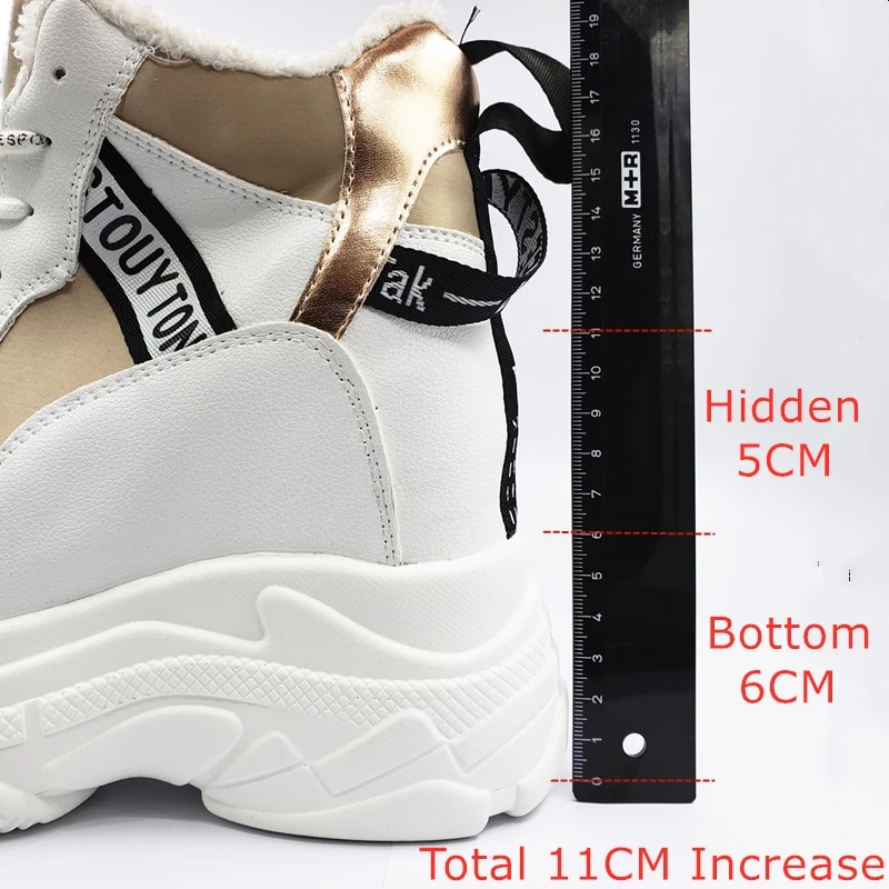 Trend Women Chunky Sneakers Hidden Heels 11CM Height Increasing Ladies Wedge Shoes High Top Winter Plush