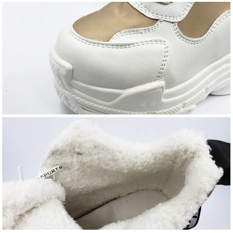 Women Shoes Winter Plus Velvet White Patent Leather Platform Shoes Ladies Fashion Sneakers Waterproof Height Increase Sneaker :Click Here