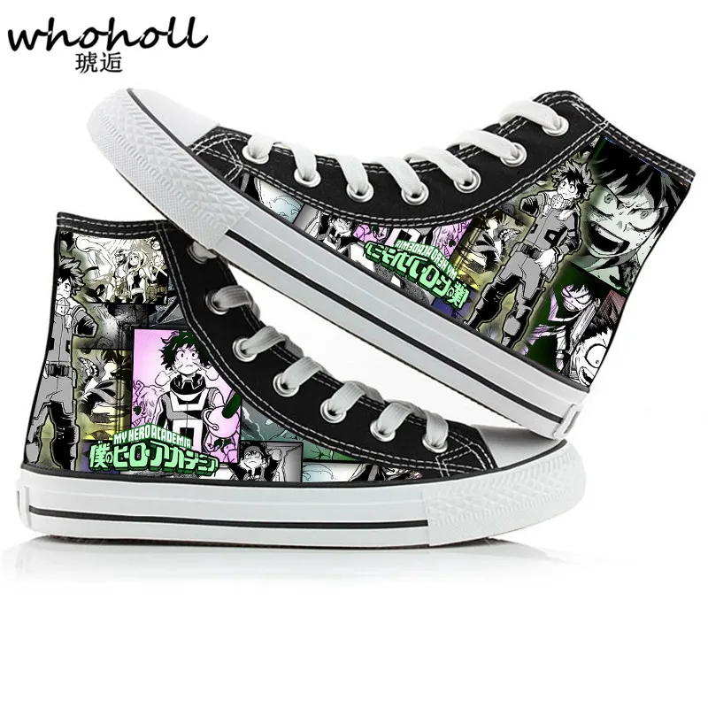 Big Sale WHOHOLL Men Women's Anime print Canvas Shoes Design Anime My Hero Academia Midoriya Izuku High Top