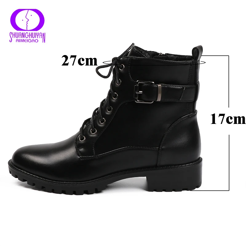 AIMEIGAO Lace-up Black Ankle Boots Women Autumn Winter Zipper Low Heels Boots Women Buckle Strap Motorcycle Boots Waterproof :Click Here