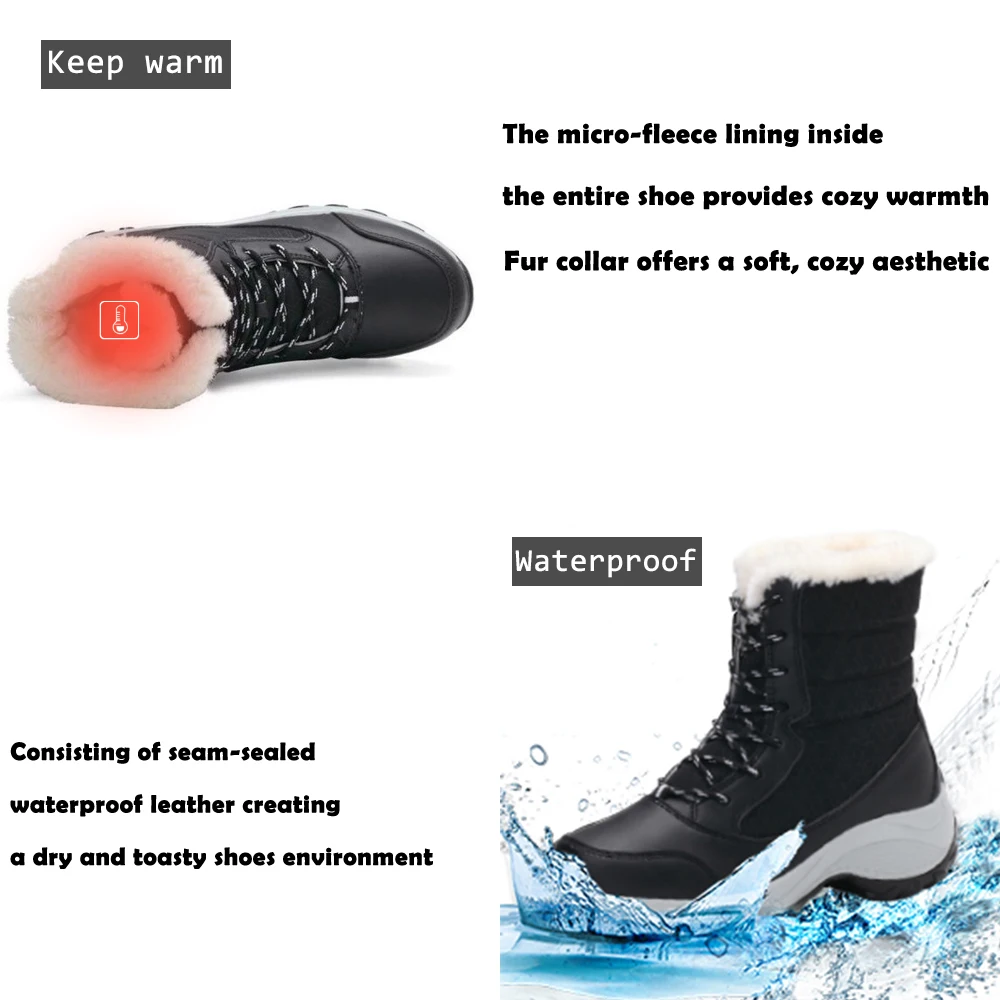 Big Deal Women Waterproof Snow Boots Casual Thick Fur Warm Platform Winter Boots Fashion High-Top Lace Up No