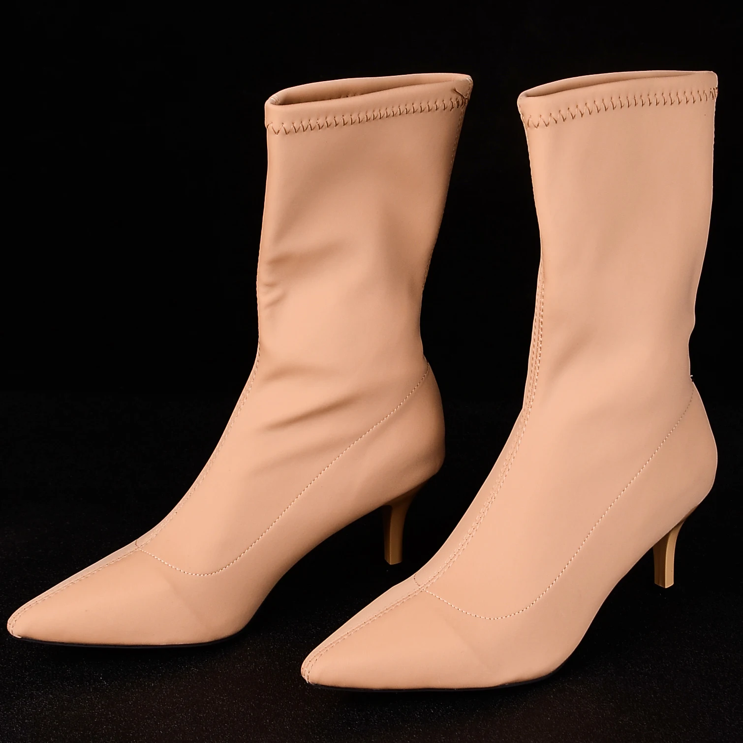 black beige microfiber stretch mid Calf Boots Women 2019 pointed toe thin Heel women shoes sexy High Heel Booties woman :Click Here