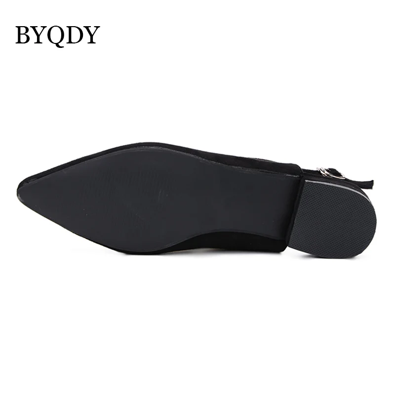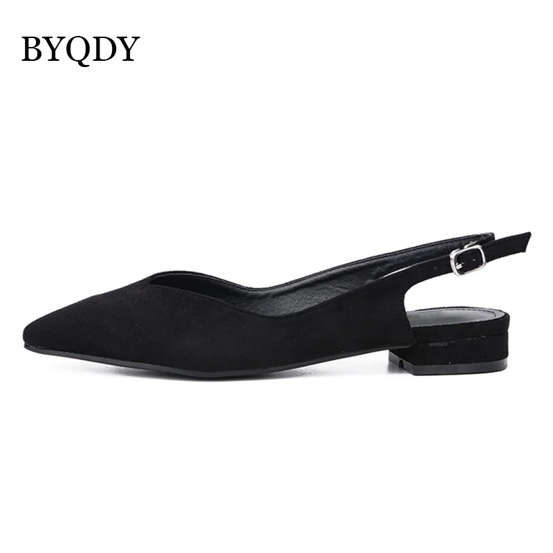 Trend BYQDY Sexy Black Low Heels Women Pumps Buckle Flock Dress Women Casual Shoes Pointed Toe Slingbacks