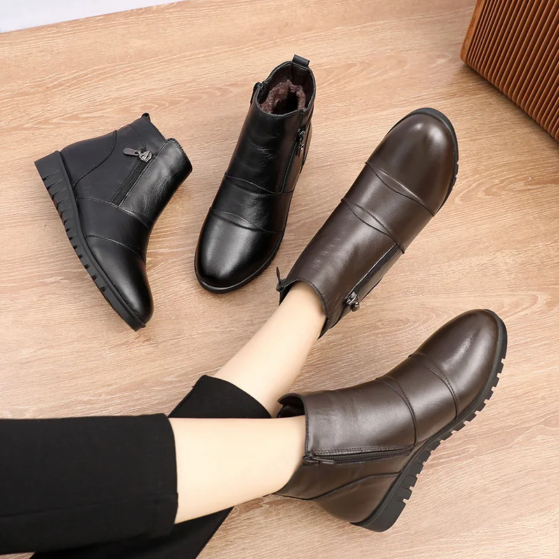 MUYANG Winter Boots Women Genuine Leather Flat Ankle Boots Ladies Warm Shoes Woman Comfortable Black Brown Shoes Women Boots :Click Here