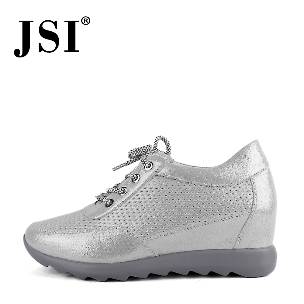JSI Fashion Sneaker Genuine Leather Breathable light Lace-up Woman Flats Round Toe Shoes Handmade Comfortable Silver FlatsJO183 :Click Here