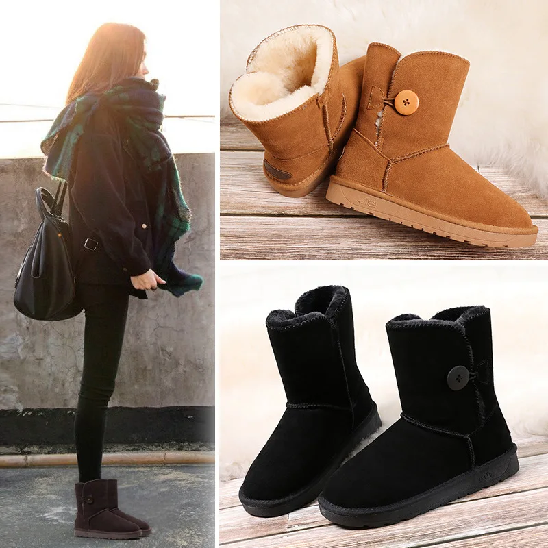 Posting Komentar untuk "Big Sale Leather snow boots female 2019 winter new tube wooden button thickening warm waterproof snow cotton "