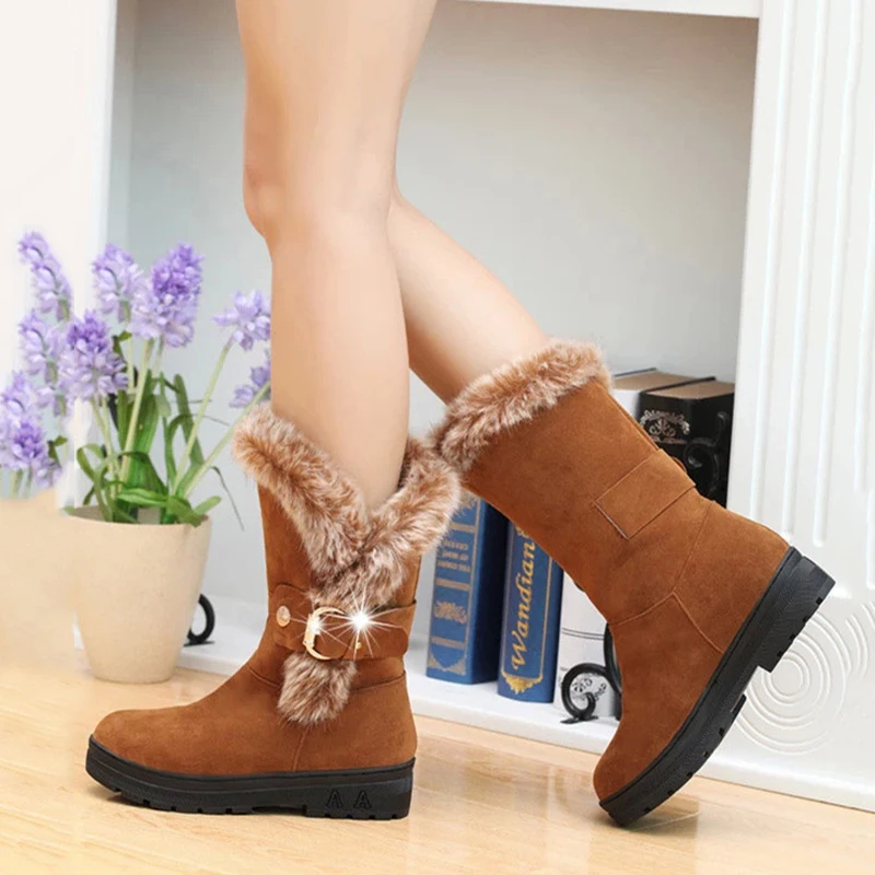 The Latest Mid-calf winter women boots with fur 2019 warm women platform shoes casual flat martin ladies snow