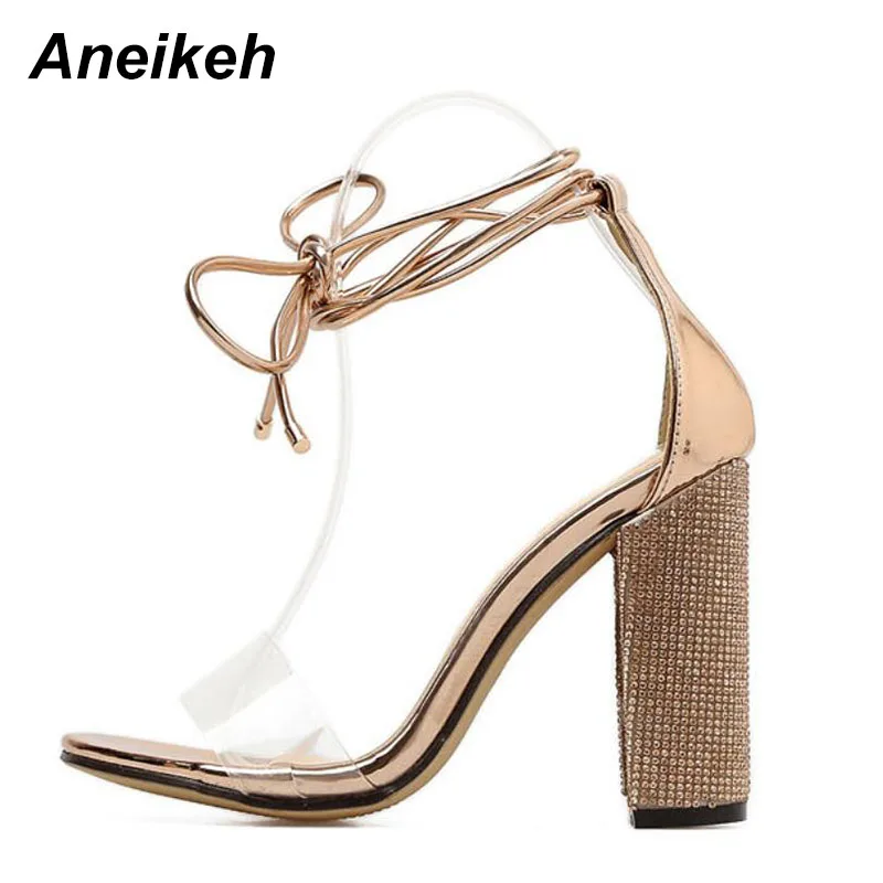 Trend Product Aneikeh Women High Heels Sandals Summer Square Heels Crystal Heeled Platform Shoes Ladies Sexy Part