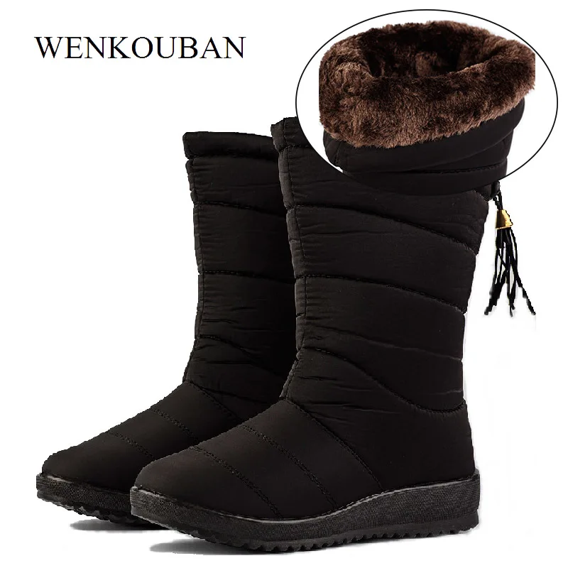 Winter Boots Women Mid-Calf Down Waterproof Boots Ladies Snow Woman Rubber Wedge Botas Fur Warm Black Botas Mujer Invierno 2020 :Click Here