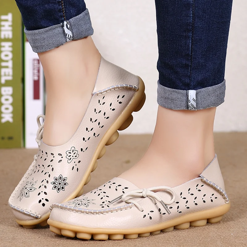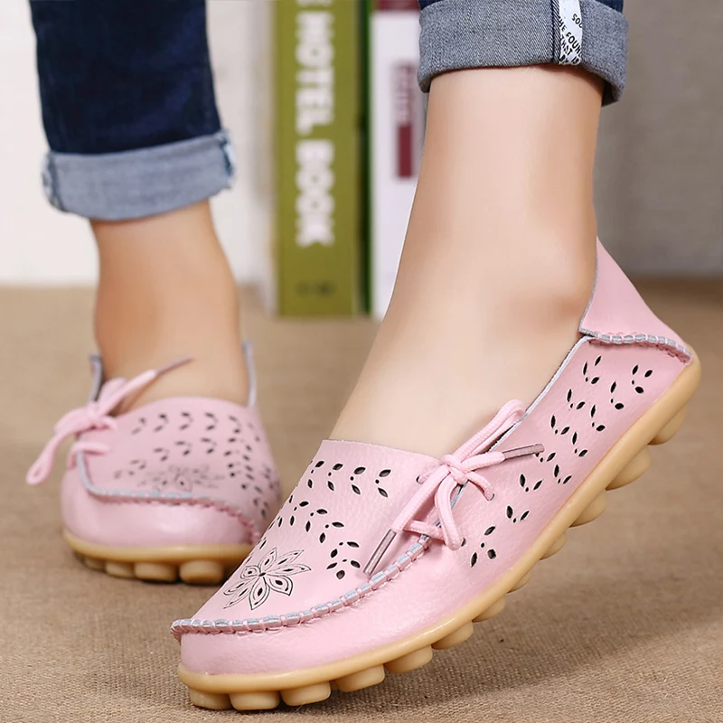Women Ballet Shoes Flats Cut Out Leather Breathbale Moccains Women Boat Shoes Ballerina Ladies Shoes :Click Here