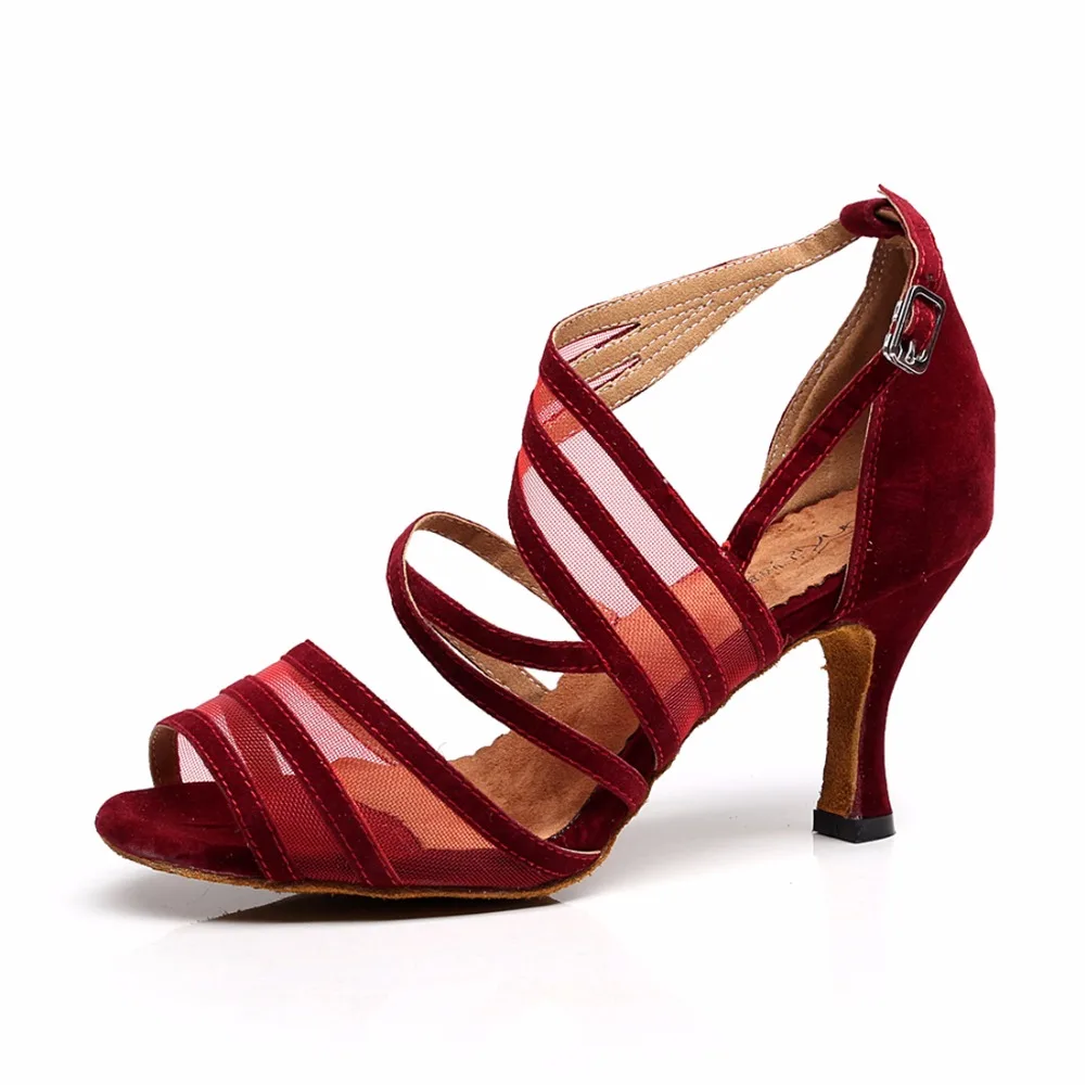 Women Latin Ballroom dance shoes Female salsa sandal Soft Sole Kizomba samba tango dance shoes High heels 6/7.5/8.5cm VA301132 :Click Here