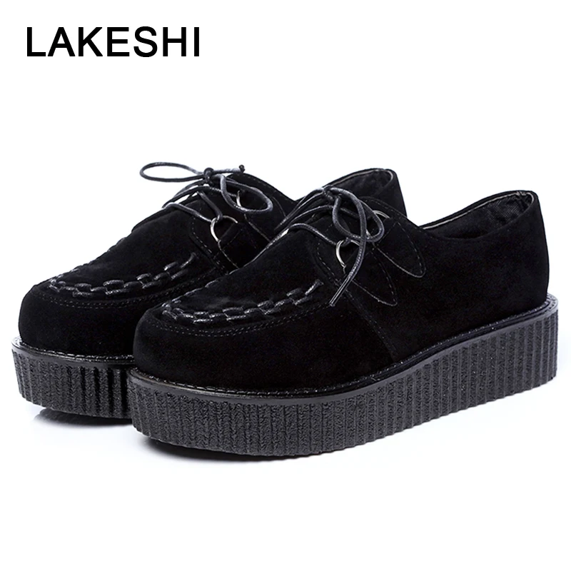Creepers Women Shoes women flats Lace-up Creepers Platform Shoes Suede comfort ladies shoes Black espadrilles female plus size :Click Here