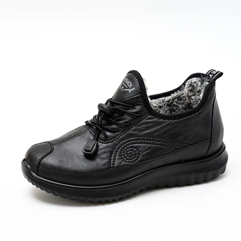 Trend MCCKLE Women Winter Flat Shoes Woman PU Leather Lace Up Mom Shoes Female Casual Plush Warm Soft Lad