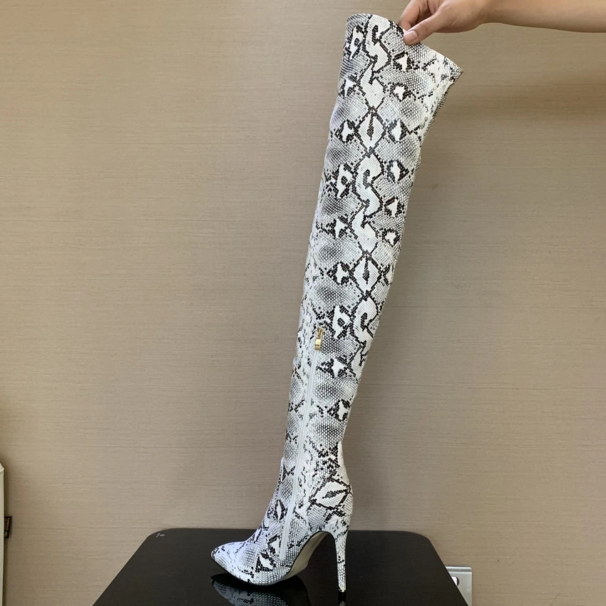 Low Price Thigh High Boots Sexy Over the Knee Boots for Women Shoes Snakeskin Pointed Toe 11CM Thin High Heel